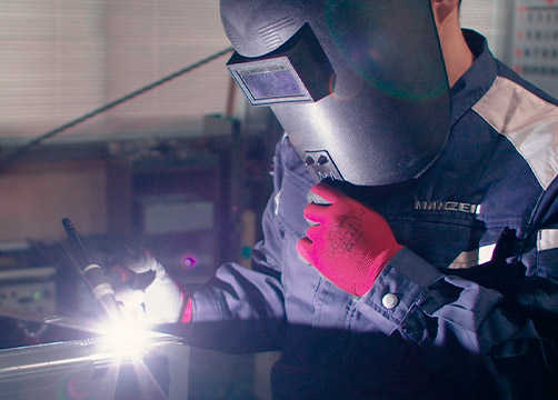 万善工機では「社内マイスター制度」を設けており、従来型の営業窓口ではなく、社内マイスター認定者(技術者)がお客様の専任担当として設計から納品・メンテナンスまでを一元管理いたします。